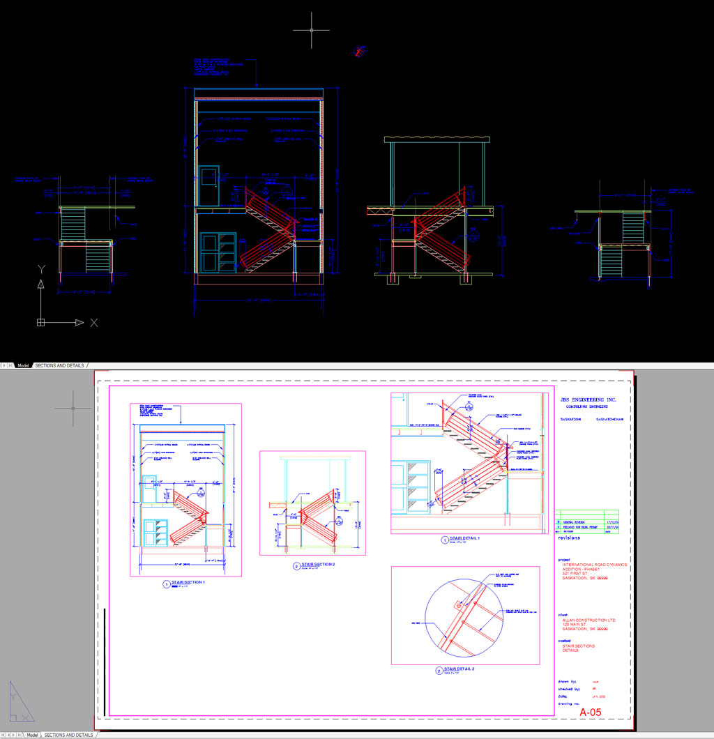 Ako moraju biti različitih mjerila, a na istom papiru - za tako nešto koristiš Layout s više Vievwporta i u svakom Viewportu odrediš potrebno mjerilo. U Layout-u rasporediš položaje crteža, dodaš nazive crteža (presjek taj i taj, mjerilo to i to), dodaš sastavnicu...