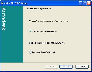 U Control panelu pokreni "Dodaj ili ukloni programe", i odaberi za AutoCAD "Promijeni". Prikazati će ti se ova slika.